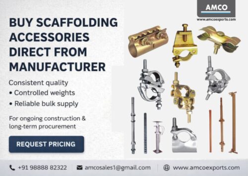 AMCO Exports is a leading scaffolding and formwork manufacturer in India, established in 1989 and based in Jalandhar, Punjab. We specialize in cuplock scaffolding accessories, tie rods (12mm, 16mm, 25mm), wing nuts, anchor nuts, base jacks, adjustable props, scaffolding couplers, and industrial formwork hardware. Our products are widely used in infrastructure projects, high-rise construction, industrial maintenance, real estate development, and power plant projects across India and export markets in the Middle East and Africa. We ensure precision manufacturing, high load capacity, durable steel quality, and bulk supply capability.